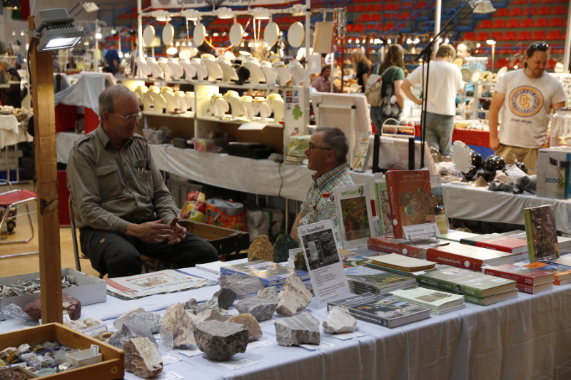 Natürlich ist die Börse auch ein beliebter Treffpunkt - hier unterhalten sich Mitglieder des Kinzigtaler Mineralienclubs (10.05.2014) |